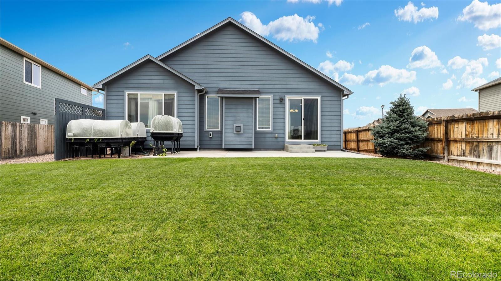 Welcome to this spacious and comfortable 5-bedroom, 3-bath ranch-style home with a full finished basement, offering the ideal blend of modern amenities and Colorado charm! An inviting open concept main level, featuring wood-plank style tile flooring leads you into a living room centered around a cozy gas burning fireplace, seamlessly flowing into a spacious dining room and a large gourmet kitchen, equipped with granite counters, a gas cooktop and double ovens. The expansive island counter makes a natural gathering spot for casual dining or entertaining. The main level includes a luxurious primary en-suite bedroom with a well-appointed bathroom, providing a private retreat. And a generously sized second bedroom with French doors, ideal for either a bedroom or a home office, with a full bath conveniently nearby. Completing the main level is a convenient laundry room, adding practicality to the home's layout. Downstairs, the basement features lofty 9-foot ceilings and offers additional living space with a large family room, perfect for movie nights or recreational activities. Two more bedrooms and a full bath in the basement provide plenty of room for guests or family. Additionally, a third bedroom "flex-space" includes vinyl floors and a utility sink, the perfect space for creative pursuits such as arts/crafts, or a home workshop! Enjoy this property's serene location with plenty of open space beyond the backyard. Whether entertaining on the outdoor patio or relaxing in a private and tranquil atmosphere, this setting enhances the overall appeal of the home. For comfort throughout the seasons, central air conditioning and a whole house humidifier ensure comfortable living in Colorado's variable climate. Parking is easy with a large garage that includes a 3rd bay, offering a 4th car tandem space or extra storage for recreational gear and tools. This move-in ready home combines modern convenience and beautiful finishes with spacious living areas to live, work, and play!